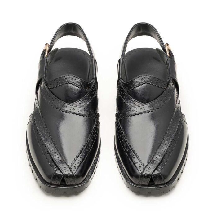 Heritage Black Peshawari Chappal—Handcrafted Tradition